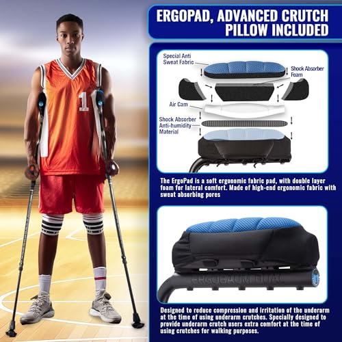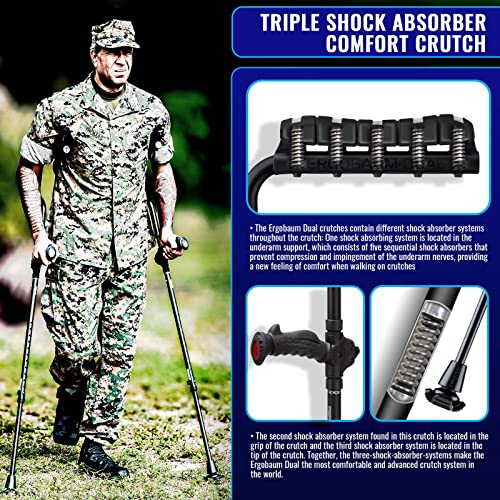 Ergobaum Dual(5′ to 6’6”) Ergonomic Underarm Crutches (1 Pair) of Double-Function Shock Absorber Underarm Crutches with Arm Support (Black)