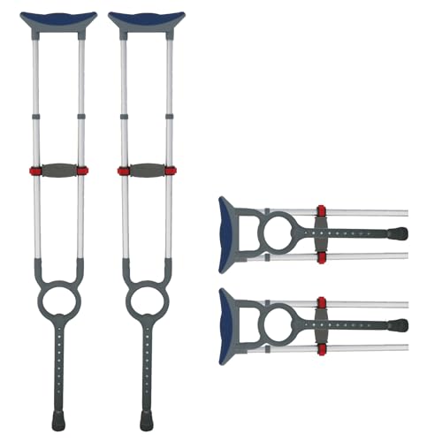 Lightweight Underarm Crutches with Height Adjustment up to 300 LBS, Aluminum Walking Aid for Teens to Adults Range 4’6”– 6’6”,with Underarm Pad and Hand Grip,1 Pair (Gray, Circle)