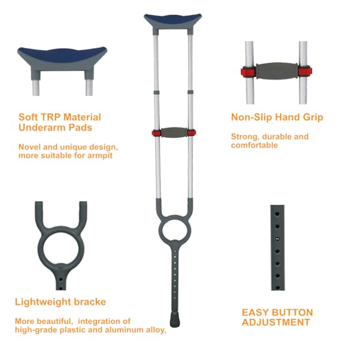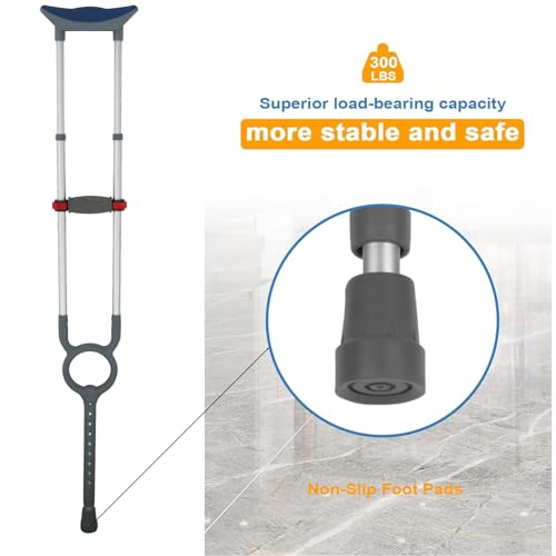 【Lightweight & Durable】Sold in pairs. Made of aluminum, durable yet lightweight crutches provide great support without the heaviness of wood, capable of supporting up to 300 LBS.