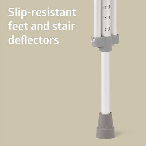 Recovery isn’t a one-size-fits-all process. That’s why Medline’s Red Dot crutches adjust to create a custom, comfortable fit. What makes these crutches unique is the Red Dot handgrips, which use clip-locks to slide along each crutch’s aluminum bars to fit firmly in the user’s hands. Adjust the overall length of the crutch using pushbutton pins to select a snug, supportive fit that won’t strain the user’s armpits. Slip-resistant rubber feet with stair deflectors provide excellent traction and peace of mind when you’re out and about or going about everyday life at home. Suitable for people 5’1”–5’9” tall, these sturdy crutches easily support up to 300 lbs.
