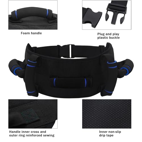 Gait Belt Transfer Belts for Patient Care Seniors, Gait Belts for Physical Therapy Adjustable Transfer Belt with Quick Release Buckle Anti-Slip Function(5 Handles)