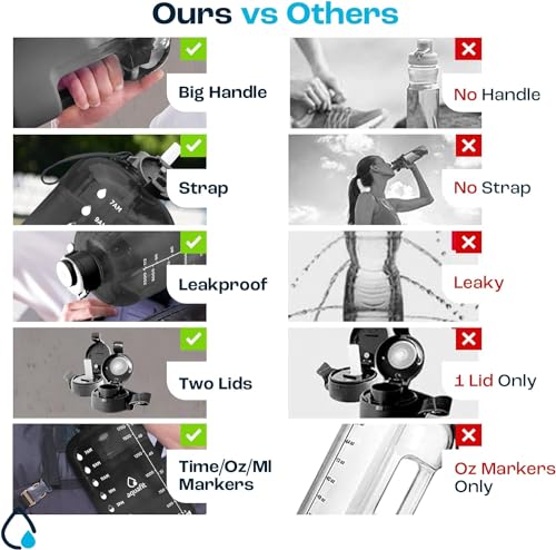 Large 1/2 gallon, 64 oz water bottle – Our water bottles with times to drink are durable, lightweight and portable. Forget about refills: this motivational water bottle is perfect for an on-the-go lifestyle!