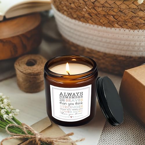 HIWX Inspirational Scented Candle, Inspiration Candles Gifts for Women Friends Sister Coworkers, Always Remember You Arebraver Than You Believe Inspiring Motivational Scented 8oz Holder Candles Jar