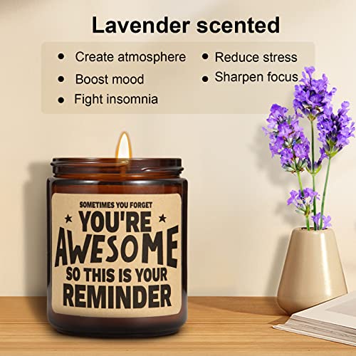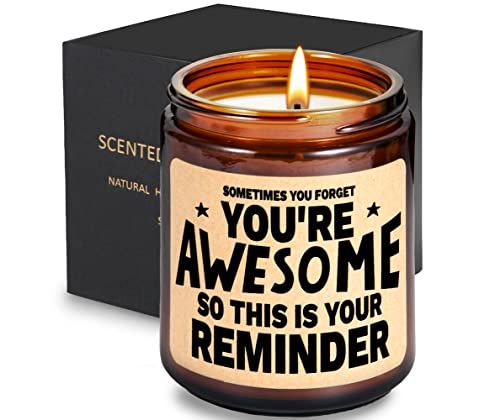 【Fabulously Fun jar candle, Exquisite Packaging Box】- Securely set in foam and packed with a beautiful gift box, our candles will arrive in perfect condition. With the words ‘Sometimes You Forget You’re Awesome so This is Your Reminder’, perfect funny gift for friends and loved ones. A hilarious gift for birthdays, Christmas, and Anniversaries. Our fun candles have a yummy lavender scent. He/She will be so impressed when upon opening this romantic jar candle with funny sayings.