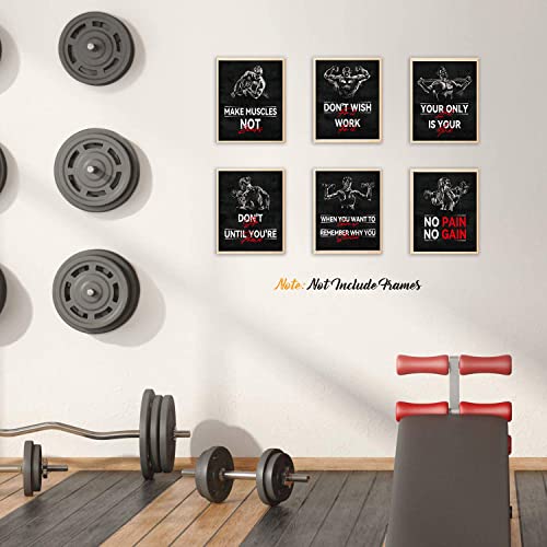 YIMEHDAN Inspirational Gym Quote Wall Art Print – Workout Fitness Canvas Print – Sports Themed Artwork for Gym Exercise Room Decor (Set of 6) – Unframed – 8X10 inch