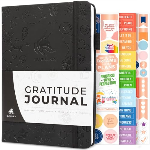 Clever Fox Gratitude Journal – Happiness, Positivity & Affirmation Daily Journal – Inspirational Daily Notebook – 3 Months, A5 (Black)
