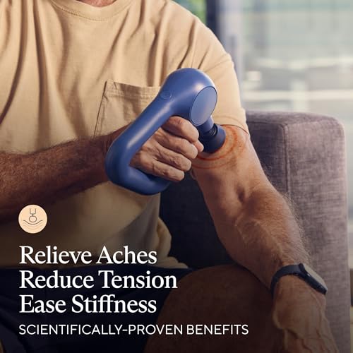 TheraGun Relief Handheld Percussion Massage Gun – Easy-to-Use, Comfortable & Light Personal Massager for Every Day Pain Relief Massage Therapy in Neck, Back, Leg, Shoulder and Body (Navy)