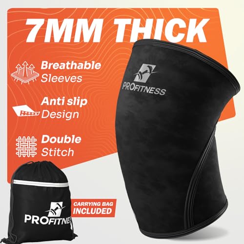 ProFitness Knee Sleeves Weightlifting Men & Women – 7mm Thick Premium Neoprene Weight Lifting Knee Sleeve for Women & Men Ideal for Squats, Powerlifting & Deadlift | Squat Knee Sleeves for Men & Women