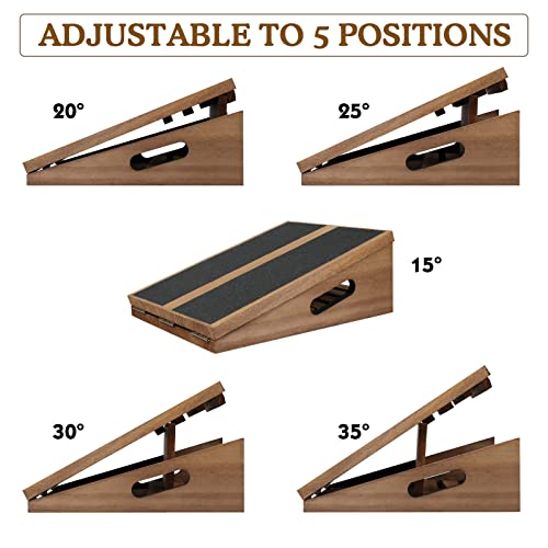 Professional Slant Board Calf Stretcher: Adjustable Incline Stretch Squat Wedge, Posture Board Wooden Physical Therapy Equipment, Non Slip Achilles Stretcher with Extra Side Handle – Brown