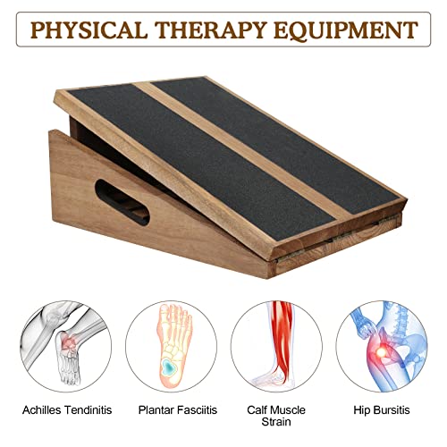 Excellent Quality: The slant board is made of premium natural wood with rich and beautiful texture. The thickened design makes the weight-bearing capacity of 450 lbs. It has some flexibility and impact resistance to protect your heel and calf muscles from injury.