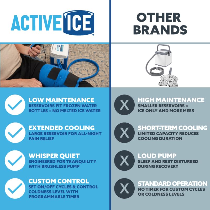 SILENT YET POWERFUL PUMP Engineered for tranquility, our brushless pump operates quietly, ensuring your sleep or rest isn’t disturbed while you heal with our effective cryotherapy treatment.