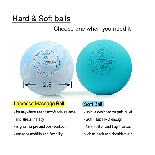 KSONE Lacrosse Massage Ball Set – Muscle Massage Roller- Deep Tissue Balls -Hard and Soft Massage Ball with Mini Ball